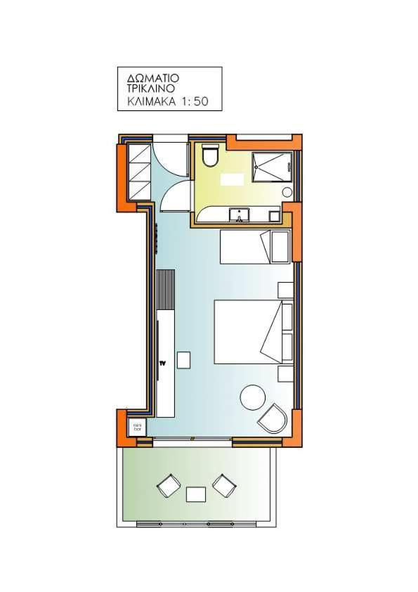 Superior Triple Room. This air-conditioned triple room includes a flat-screen TV with streaming services, a private bathroom as well as a terrace. The unit offers 2 beds. ;
