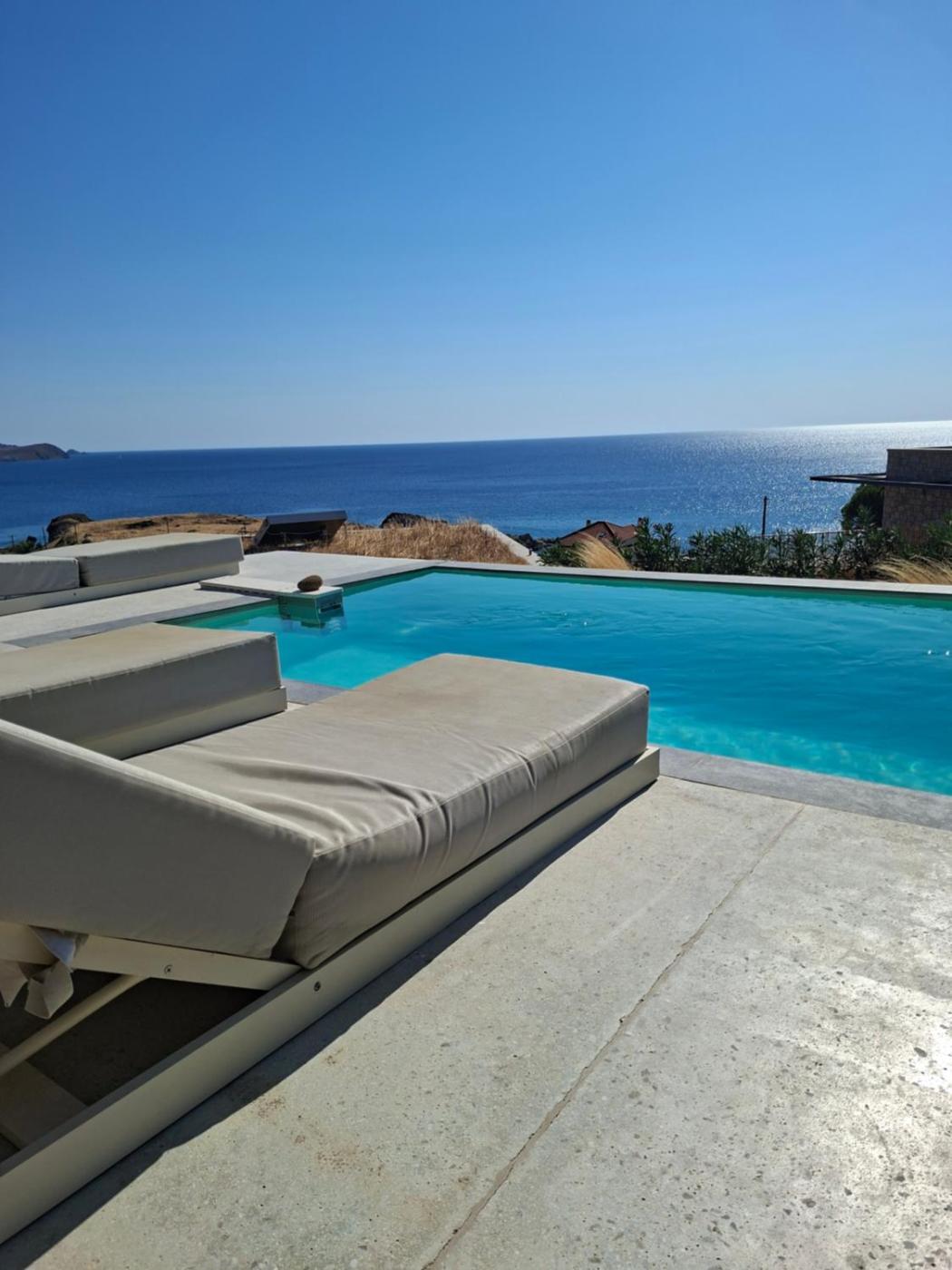 Two-Bedroom Villa. This villa features a pool with a view. Boasting a private entrance, this air-conditioned villa features 1 living room, 2 separate bedrooms and 1 bathroom with a bath and a shower. The well-equipped kitchen has a stovetop, a refrigerator, a dishwasher and kitchenware. Featuring a terrace with sea views, this villa also features a washing machine and a flat-screen TV with streaming services. The unit has 2 beds.