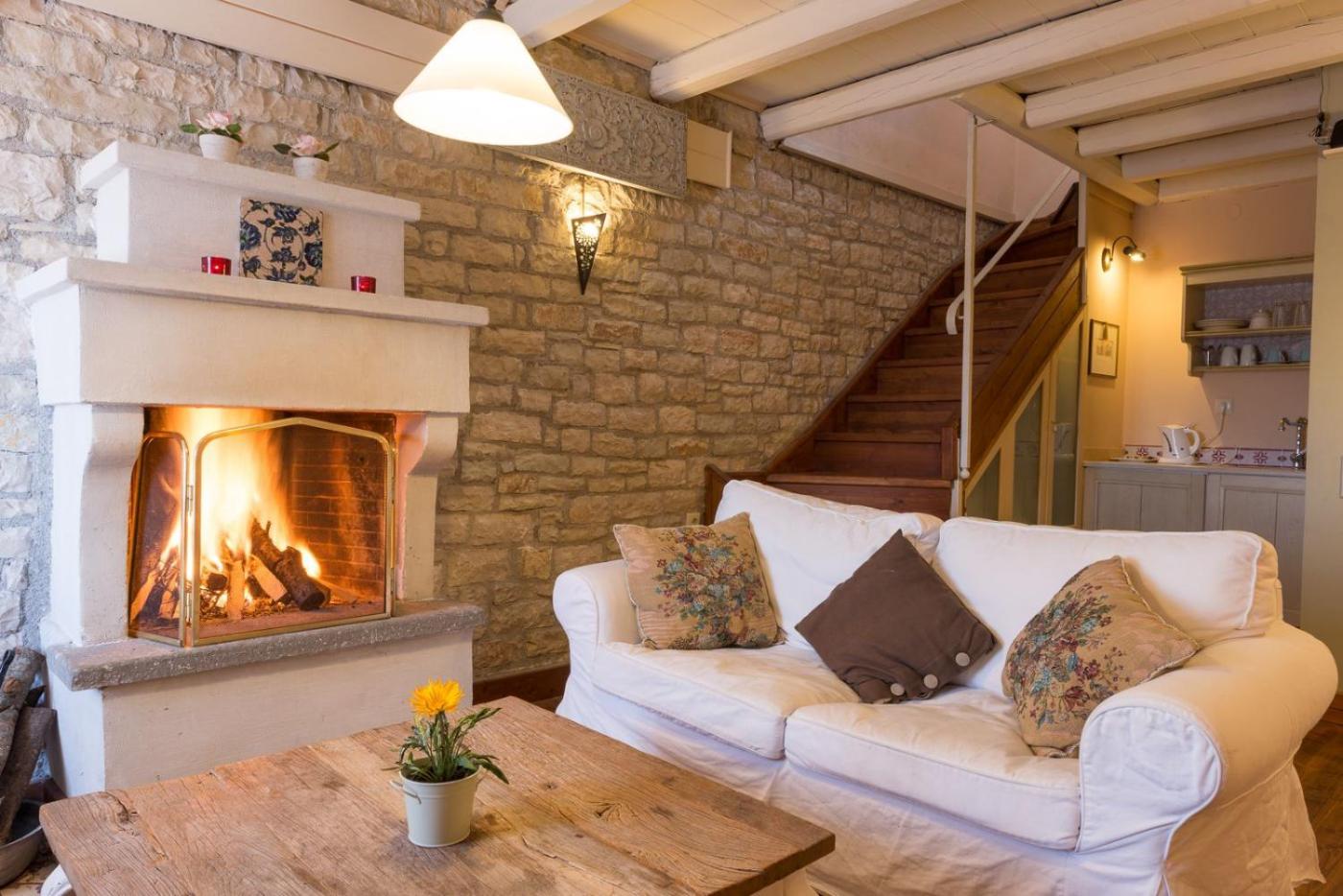 The spacious country house with a terrace and mountain views has 1 bedroom, a living room, a flat-screen TV, an equipped kitchenette with a fridge and a stovetop, and 2 bathrooms with a bath. Towels and bed linen are offered in the country house. There is also a seating area and a fireplace.