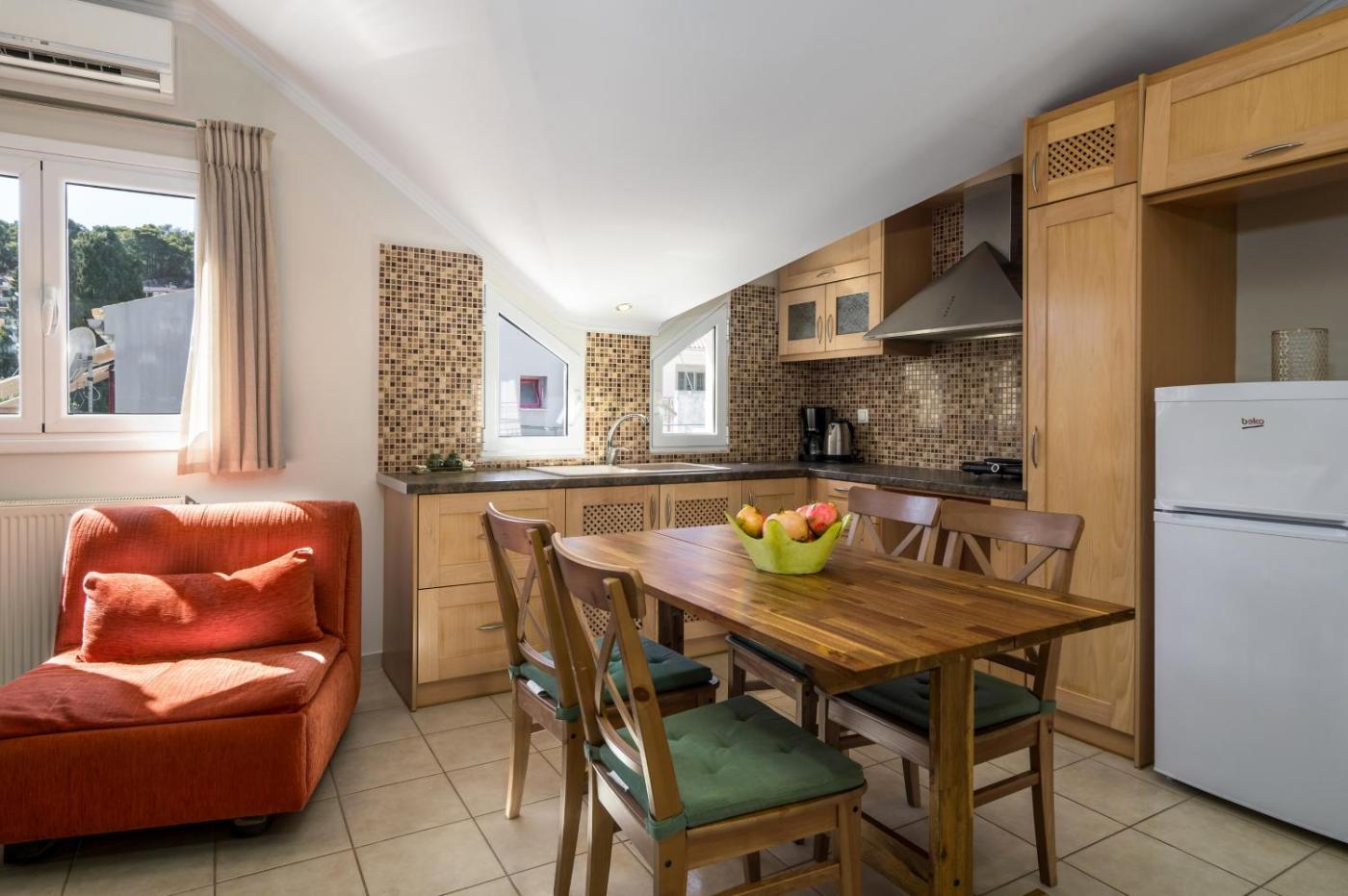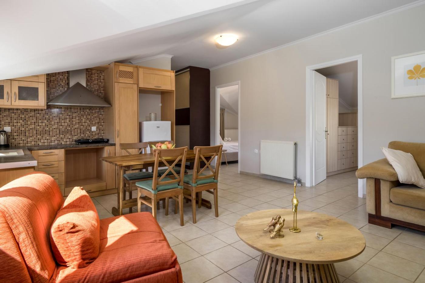Loft. This spacious apartment comes with 1 living room, 2 separate bedrooms and 1 bathroom with a bath and free toiletries. Guests can make meals in the kitchen that features a stovetop, a refrigerator and kitchenware. This apartment is air-conditioned and has a seating area with a flat-screen TV, soundproof walls, a tea and coffee maker, a dining area, as well as a wardrobe. The unit has 4 beds.