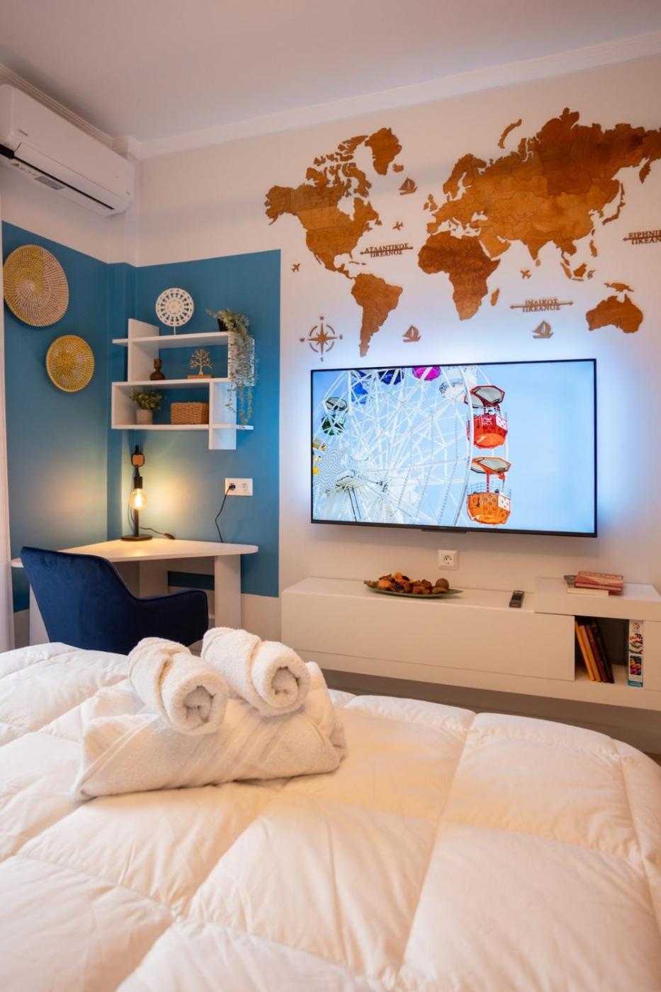 One-Bedroom Apartment. The air-conditioned apartment has 1 bedroom and 1 bathroom with a walk-in shower and a hairdryer. In the well-equipped kitchen, guests will find a stovetop, a refrigerator, kitchenware and an oven. This apartment features a tea and coffee maker, flat-screen TV with streaming services, city views, as well as winechampagne for guests. The unit has 1 bed.