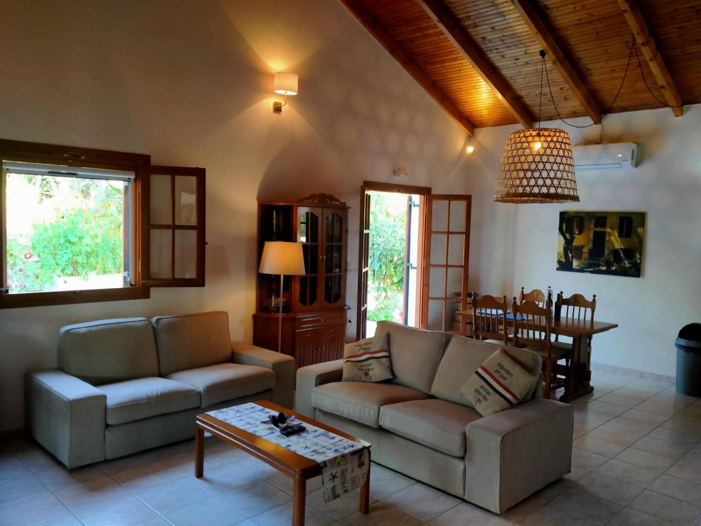 Two-Bedroom House. Featuring a private entrance, this air-conditioned holiday home consists of 2 living rooms, 2 separate bedrooms and 1 bathroom with a shower and a hairdryer. In the well-fitted kitchen, guests will find a stovetop, a refrigerator, kitchenware and an oven. Boasting a terrace with garden views, this holiday home also provides soundproof walls and a flat-screen TV with satellite channels. The unit offers 3 beds.