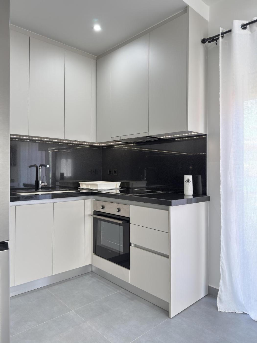 One-Bedroom Apartment. This air-conditioned apartment comes with 1 living room, 1 separate bedroom and 1 bathroom with a walk-in shower. The well-fitted kitchen has a stovetop, a refrigerator, kitchenware and an oven. Boasting a terrace with sea views, this apartment also features a washing machine and a flat-screen TV. The unit has 2 beds.