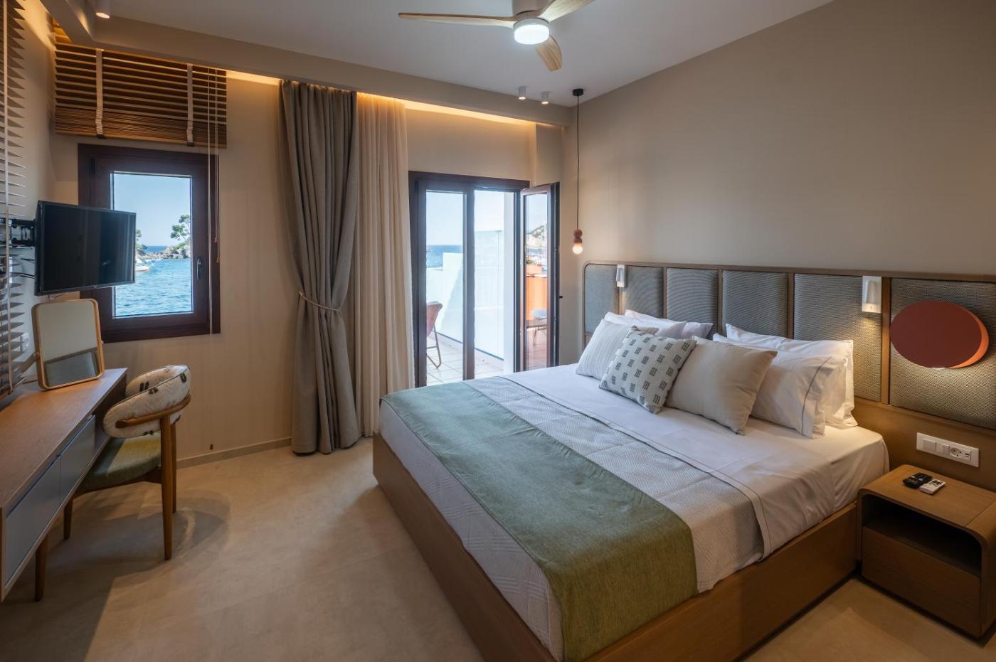 Deluxe Double Room with Sea View. The spacious double room provides air conditioning, soundproof walls, a terrace with sea views as well as a private bathroom featuring a walk-in shower. The unit offers 1 bed. ;