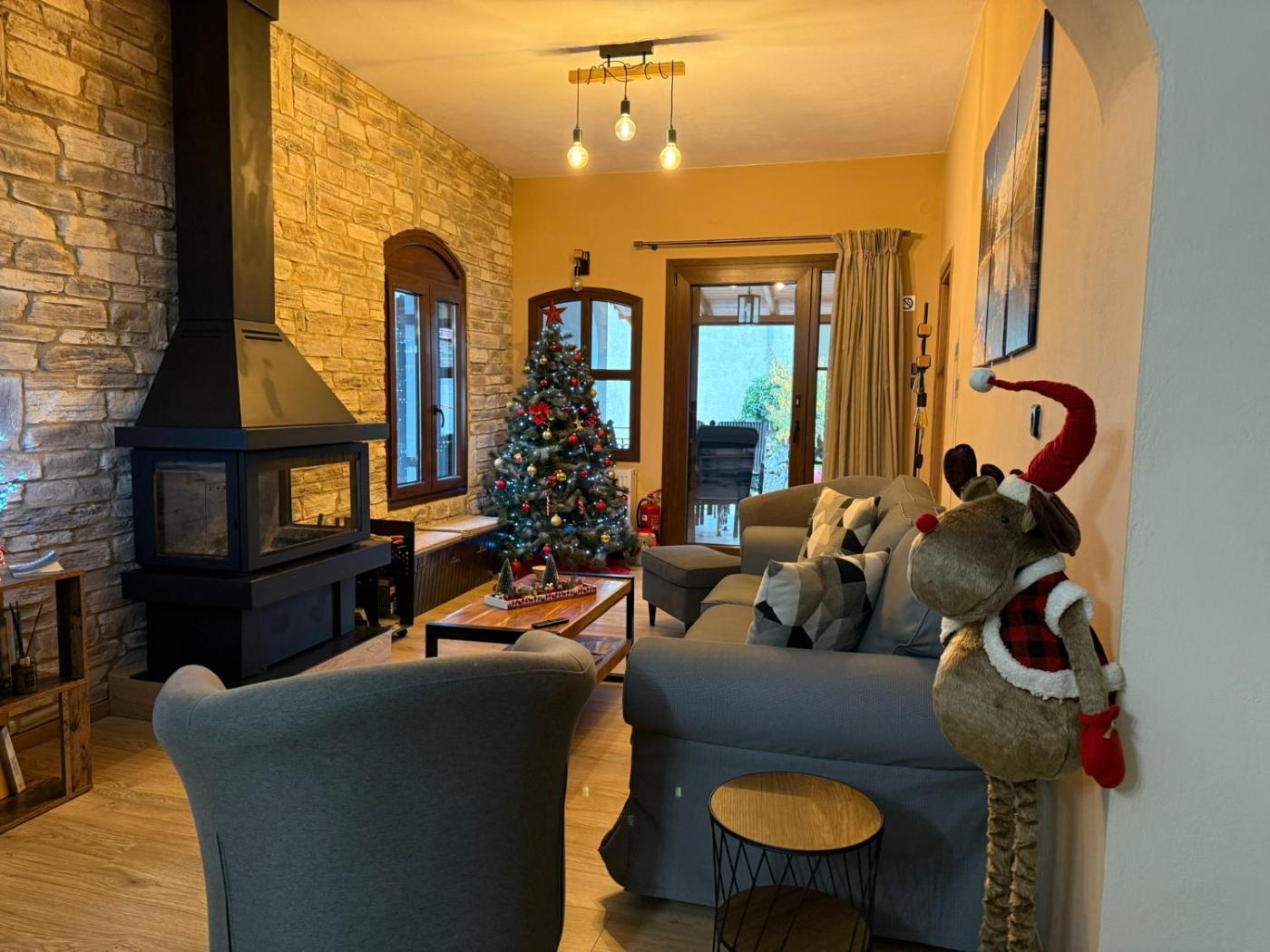 The villa has 3 bedrooms, 1 bathroom, bed linen, towels, a flat-screen TV with streaming services, a dining area, a fully equipped kitchen, and a terrace with mountain views. Guests can take in the ambience of the surroundings from an outdoor dining area or keep themselves warm by the fireplace on colder days. Additional in-room amenities include wine or champagne.