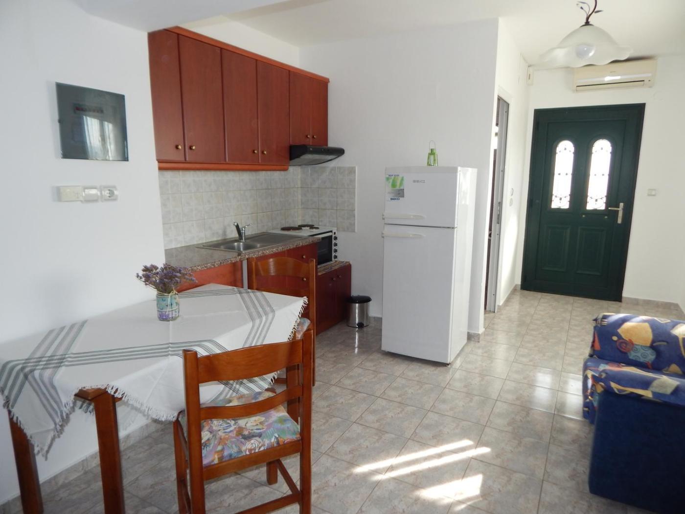 Studio Apartment. This apartment features 1 living room, 1 separate bedroom and 1 bathroom with a shower and free toiletries. The well-fitted kitchen has a stovetop, a refrigerator, kitchenware and an oven. Boasting a terrace with sea views, this apartment also features air conditioning and a flat-screen TV. The unit has 3 beds. ;