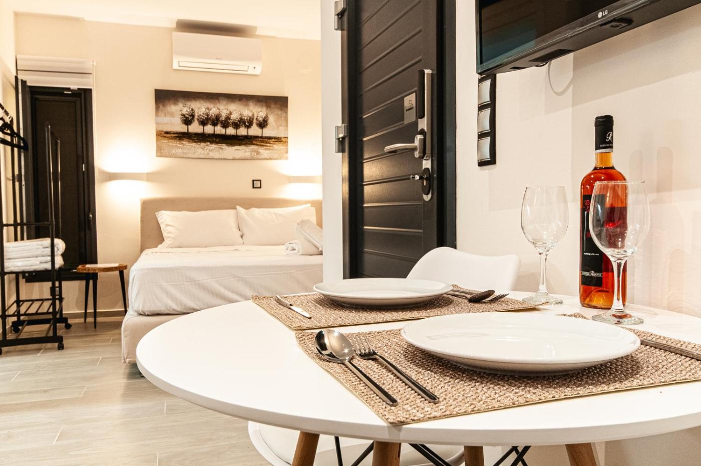 Deluxe Double Room with Balcony and Sea View. In the fully equipped kitchenette, guests will find a stovetop, a refrigerator, kitchenware and a tea and coffee maker. The spacious double room offers air conditioning, a private entrance, a terrace with sea views as well as a private bathroom boasting a walk-in shower. The unit has 2 beds. ;