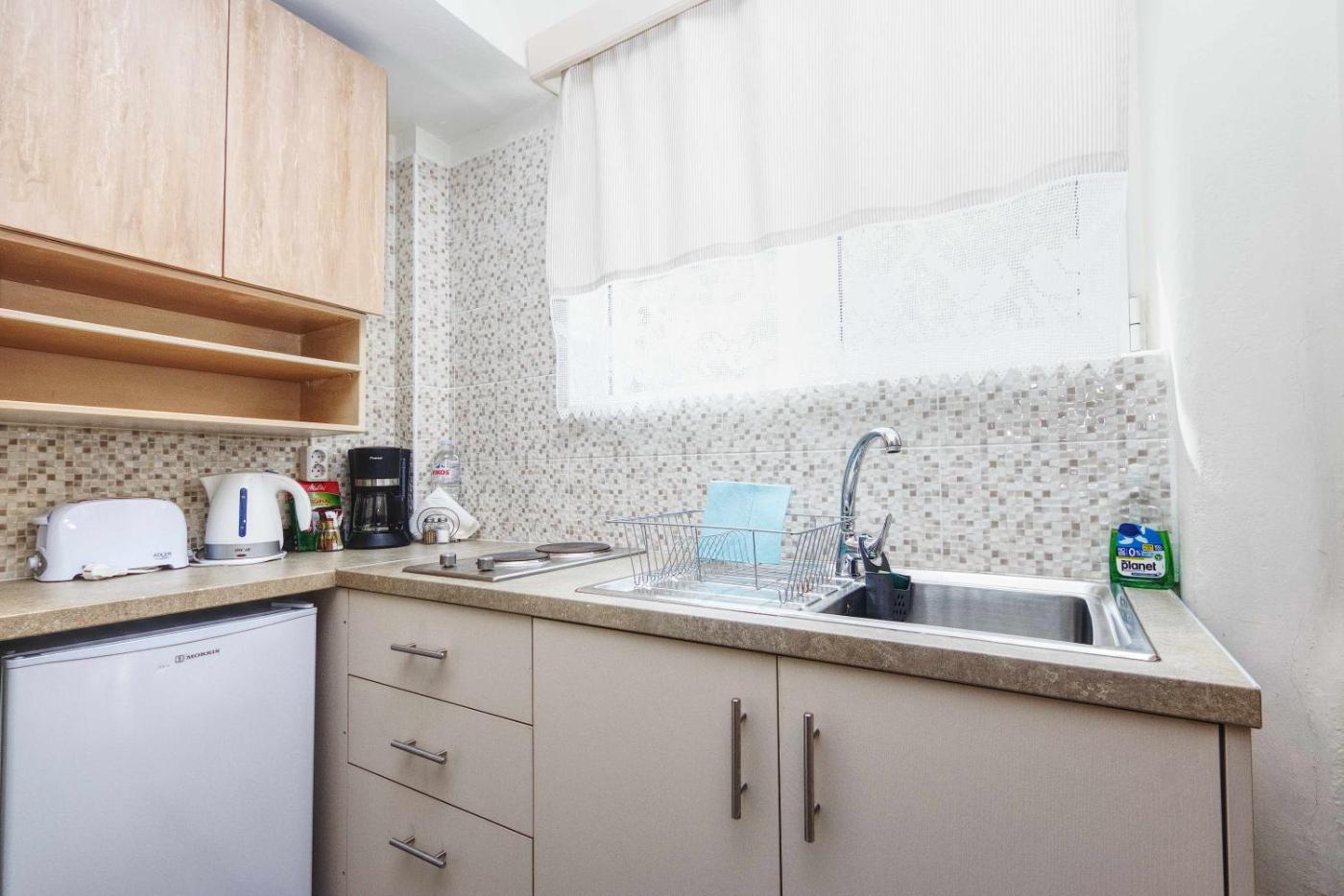 Studio Apartment with Sea View. Featuring a private entrance, this air-conditioned apartment comprises a kitchen, 1 bedroom and 1 bathroom with a shower and a hairdryer. Meals can be prepared in the well-fitted kitchen, which comes with a stovetop, a refrigerator, kitchenware and a tea and coffee maker. Boasting a terrace with sea views, this apartment also provides soundproof walls and a flat-screen TV. The unit offers 2 beds. ;